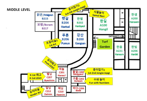 The class will take place in the Pureun Class classroom (B 206), and pickup time will be at 1:30 PM from that classroom.