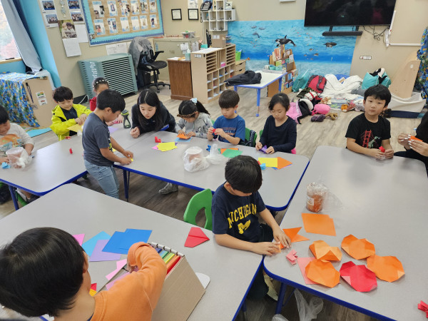 하트만 완성한 친구들도 있고 7개 모두 접어서 완성한 친구들도 있네요.