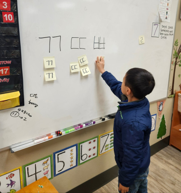 활용학습 - 포스트 잇에 쌍자음과 기본자음을 써서 교실에 붙이고, 쌍자음 2개씩 찾아오기